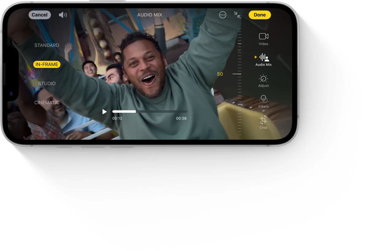 Снимайте великолепные плавные видеоролики с эпическими моментами и повседневной жизнью как на фронтальную, так и на основную камеру в формате 4K Dolby Vision с HDR-видео со скоростью до 60 кадров в секунду.