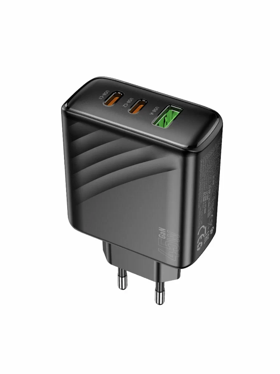 Мощность зарядки составляет до 45 Вт, что позволяет заряжать устройства с высокой скоростью.